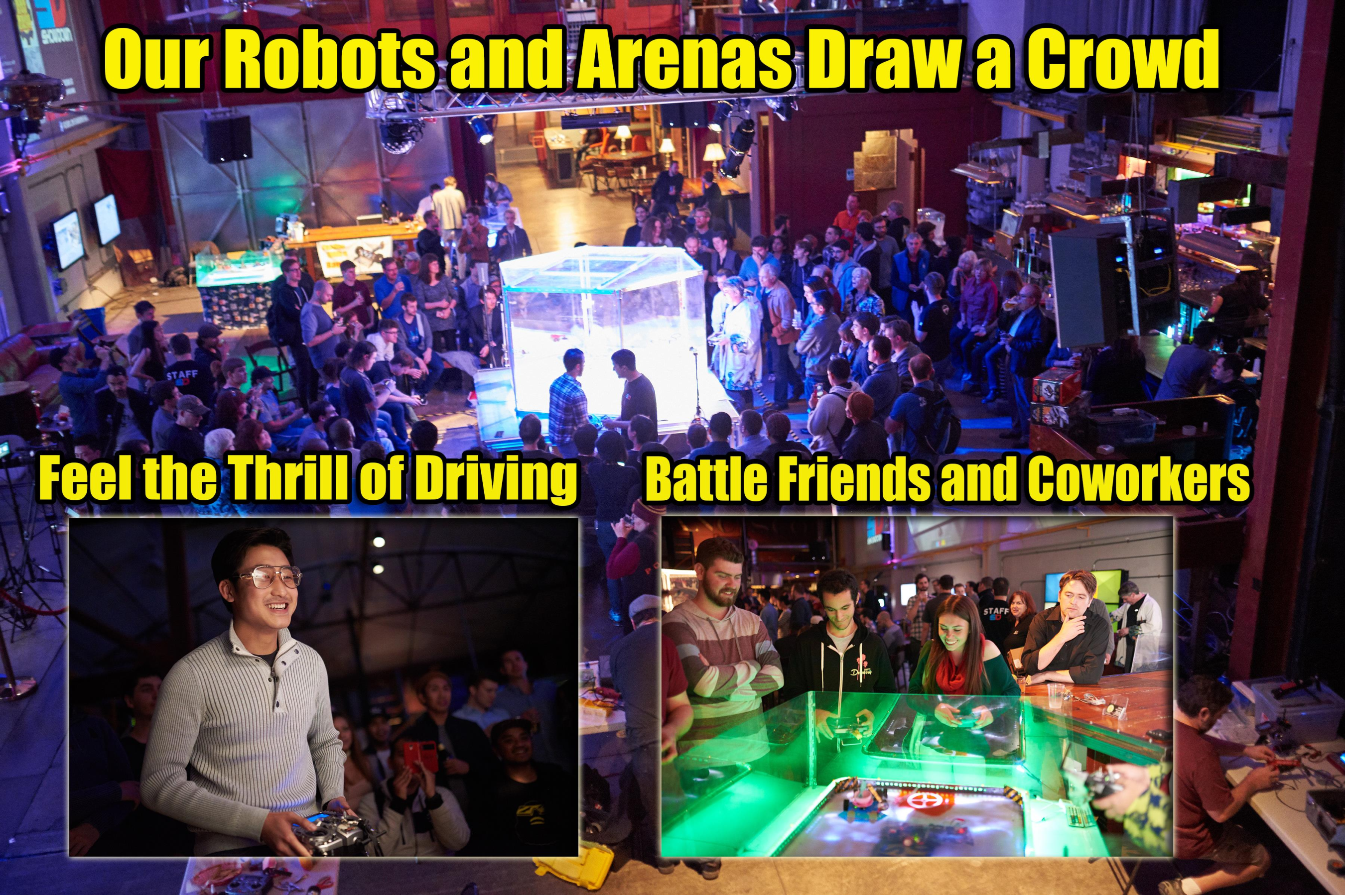 Bring your team together with real robot battles at your office or venue. Perfect for any occasion and hands on team building fun.